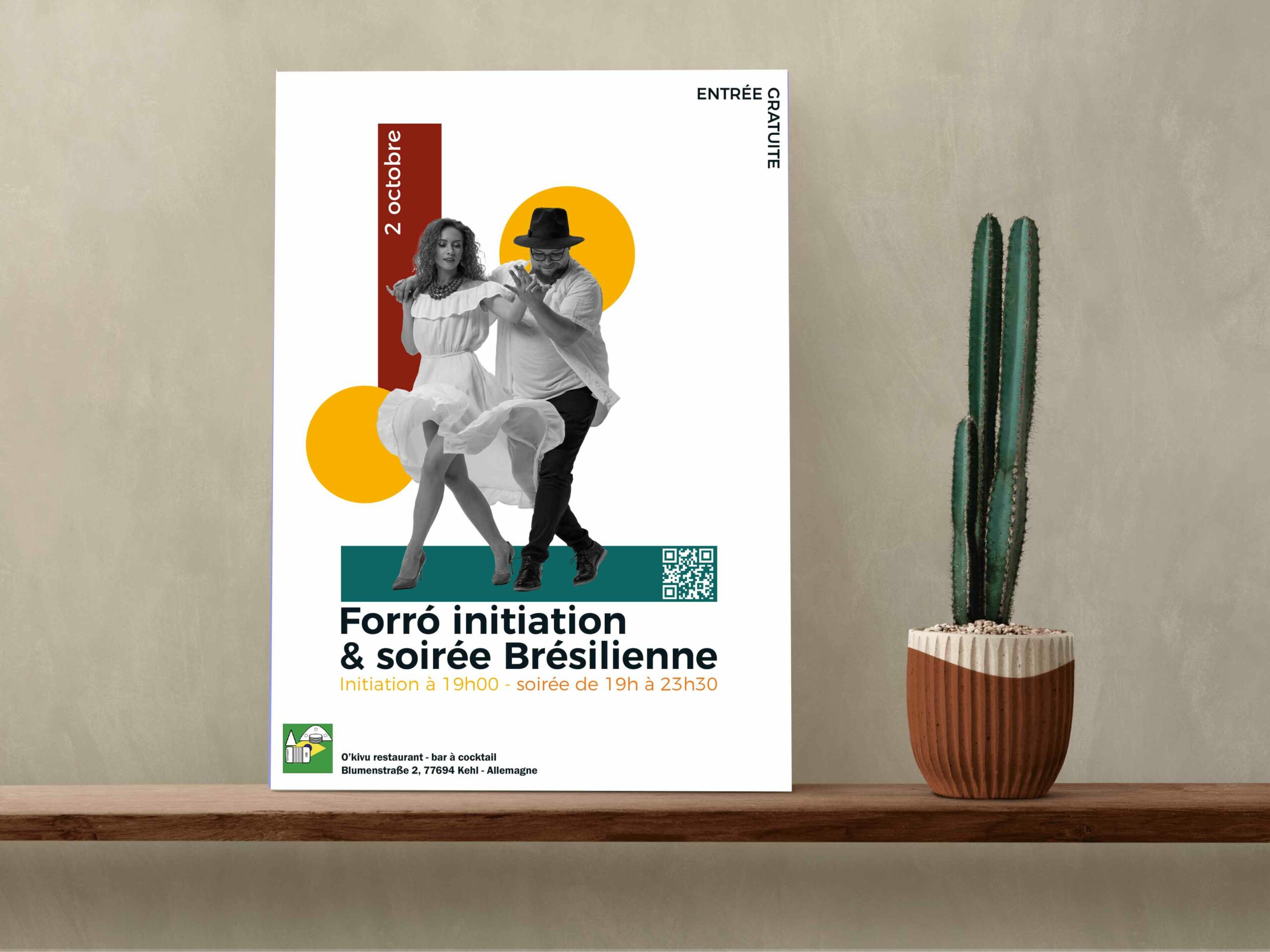 Création d’une affiche dynamique pour des soirées brésiliennes, mêlant couleurs vives et ambiance festive.